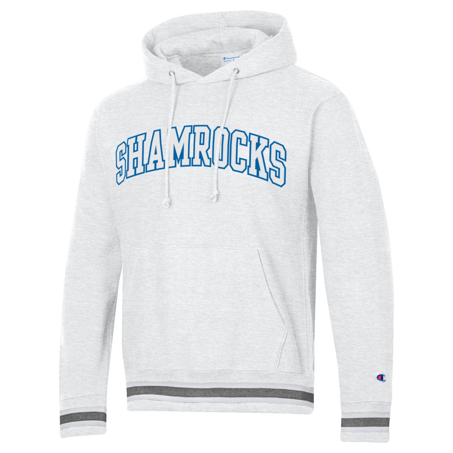 An 80/20 reverse weave fabric that is a little heavier and warm. A classic light oxford color that shows off a two tone patch SHAMROCKS on the chest and has a gray stripe at the cuff and collar.