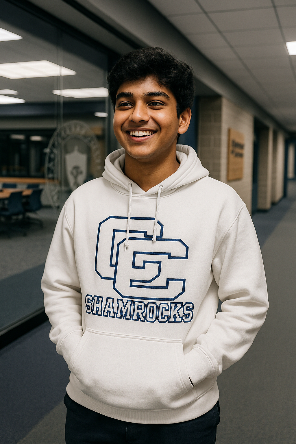 A favorite of students and Shamrocks everywhere, this 80/20 hooded pullover is a classic piece for your wardrobe collection. It is a unisex fit and has a draw cord at the neck and a pouch pocket. A two tone CC Shamrocks is printed on the front.