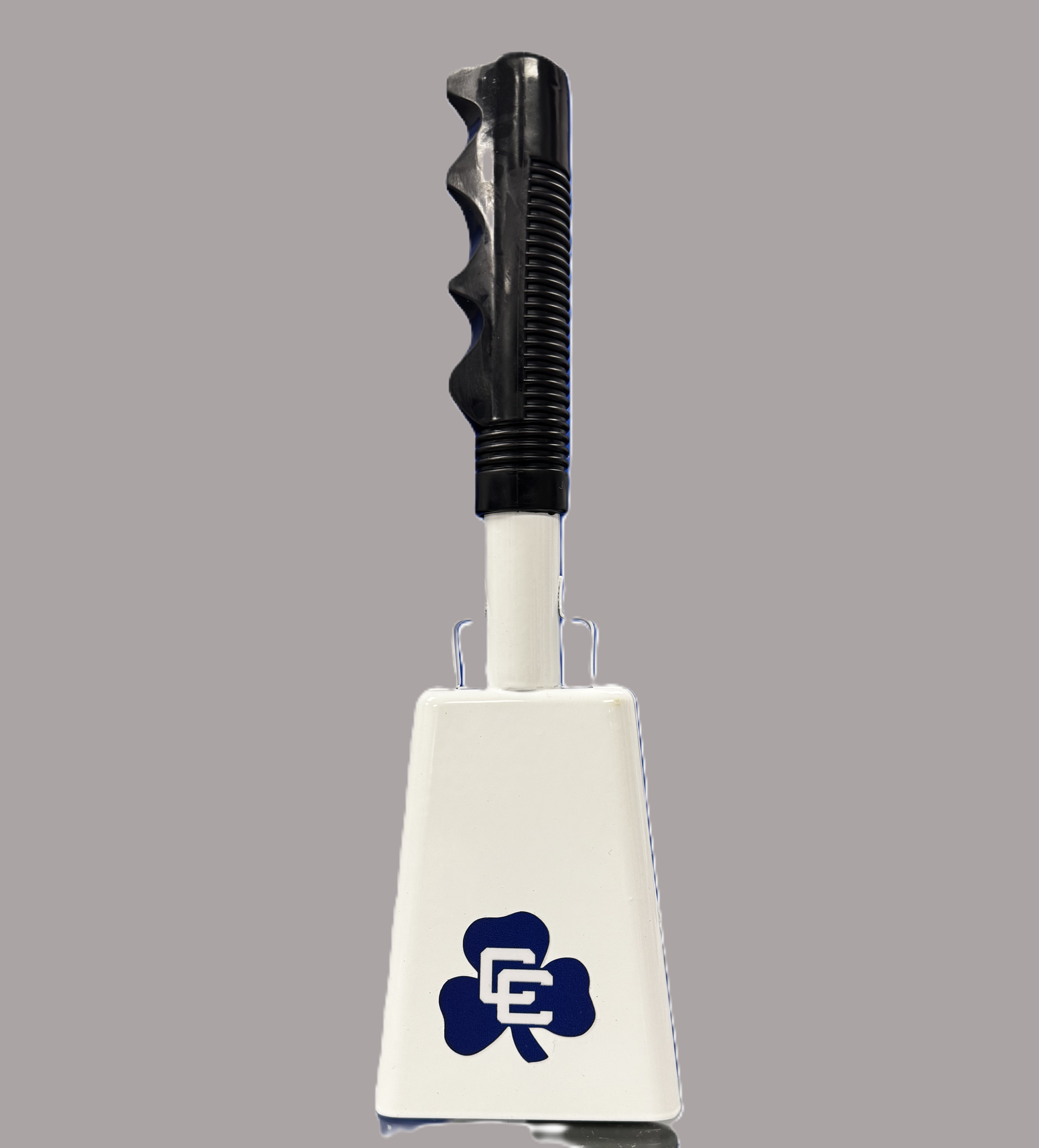 9" cowbell in white or royal blue with CC or CC Shamrock decal. Great for showing off your Shamrock spirit at events, in the stands and on the sidelines.