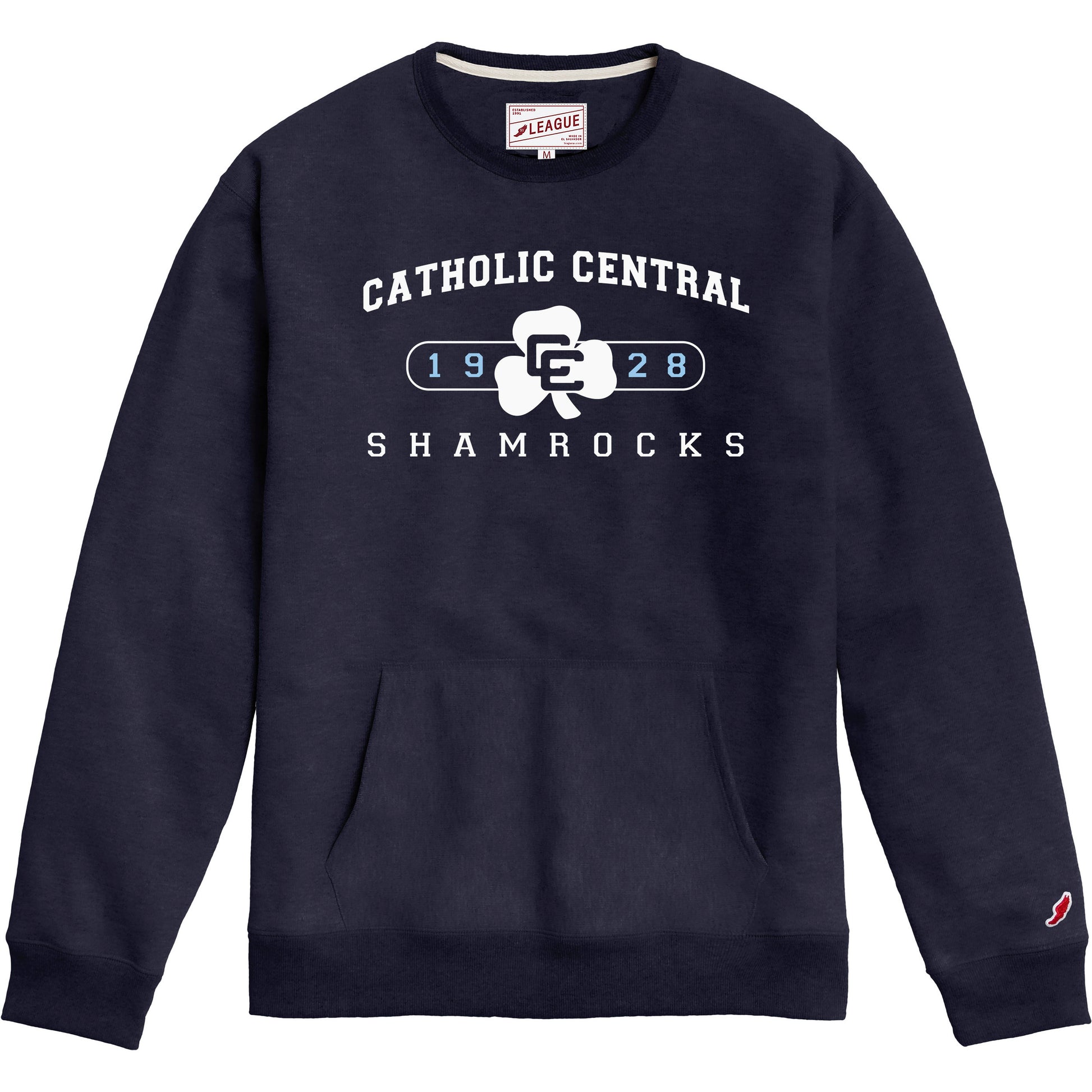 A great new option for a second layer on school days, this League crewneck sweatshirt has a pouch pocket on the front and features a sharp two tone printed design that is classic. Made of an 80/20 blend of cotton and polyester it is soft and comfortable.