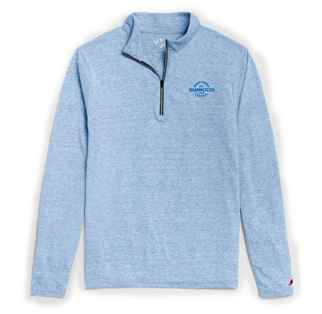 A soft and comfortable fabric made with fibers created from recycled plastic bottles, poly and cotton. The heathered light blue shows off a royal blue embroidered design on the left chest. Perfect for a light weight second layer for school days or as a unique piece for your CC apparel options.