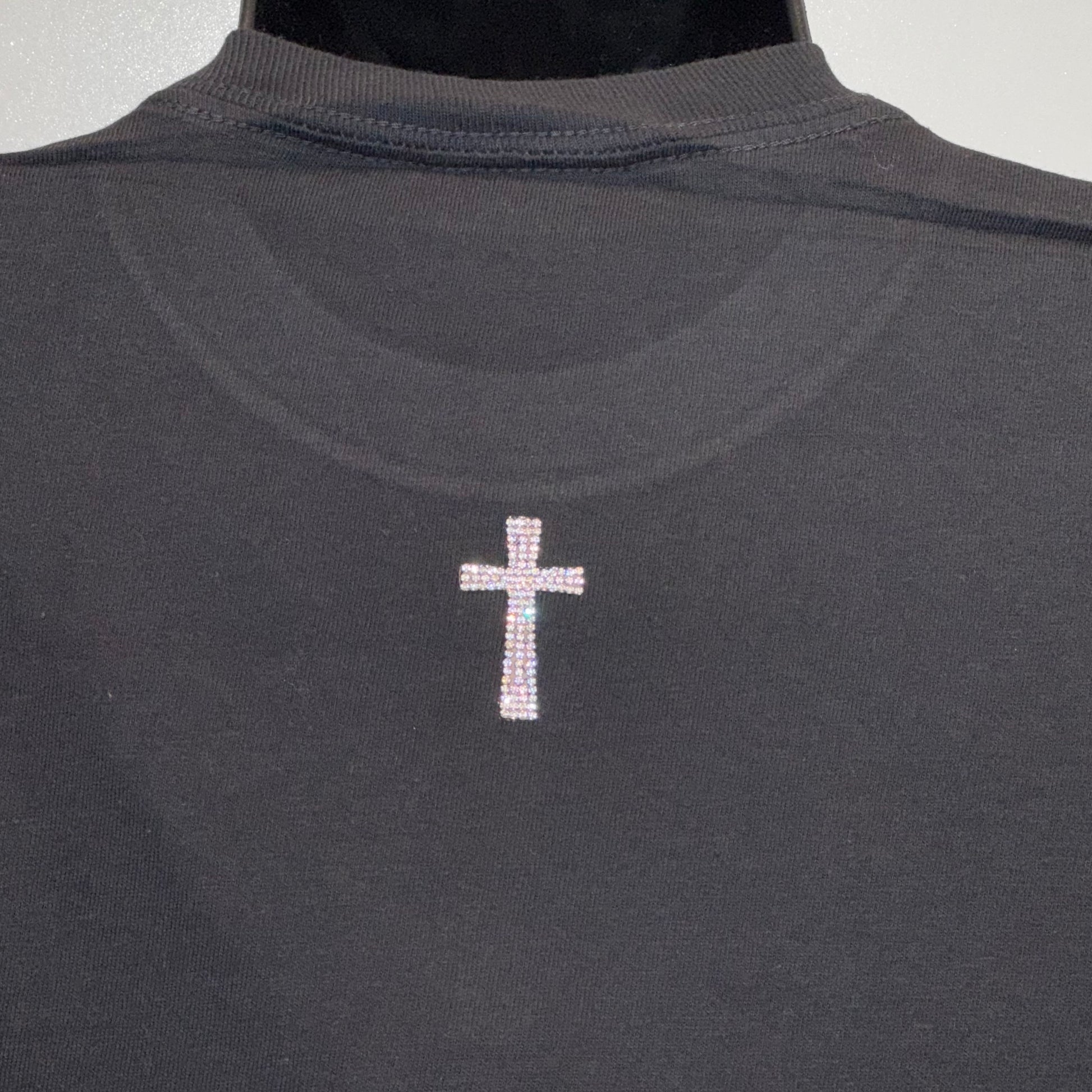 This fun design from collaborator LPT in Milford is featured on a 100% cotton crop tee. It has a sparkly rhinestone cross on the back. A feminine spin on a game day piece that everyone will ask you about.