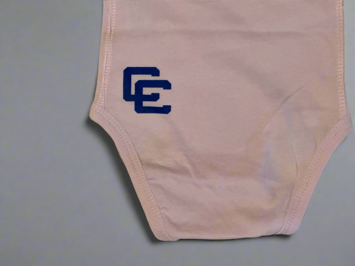 Celebrate a sweet little CC fan who is almost here or has already arrived. In a light pink with a girly font, this 100% cotton onesie will share great news or welcome a Little Shamrock into the Catholic Central community. Features a CC on the tushie so she can be seen coming or going!
