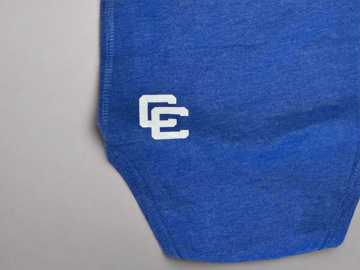 A 100% cotton onesie in tiny sizes for a tiny Shamrock fan! This royal blue shows off the peerless white imprint telling the world you have a Little CC Shamrock! With a tiny CC on the tushie you can see your mini Shamrock coming or going.