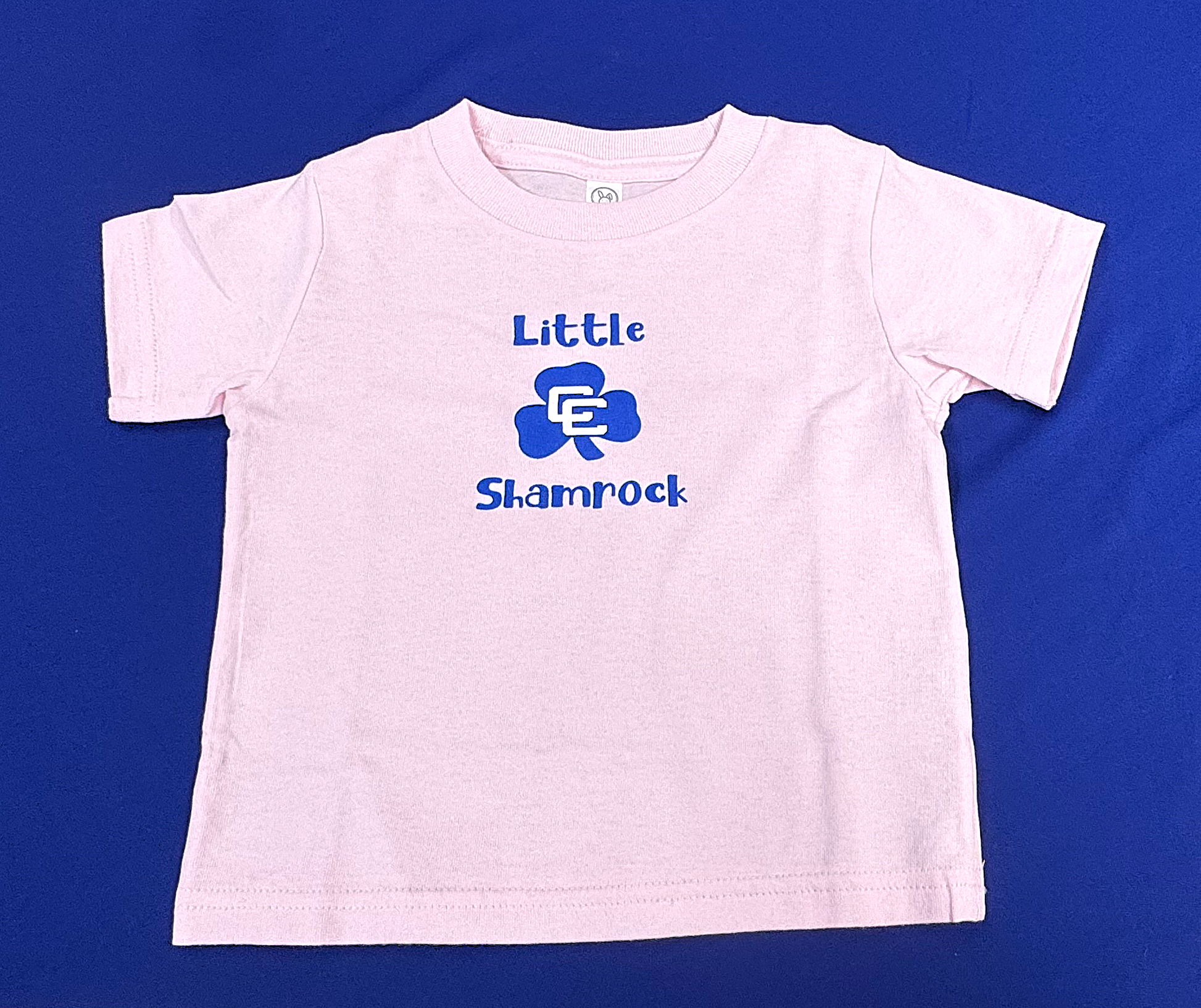 Even girls can show their Shamrock spirit. This 100% cotton t-shirt in light pink features Little Shamrock in a fun font with the royal and white CC Shamrock. She loves her Catholic Central Daddy, Grandpa, Brother....