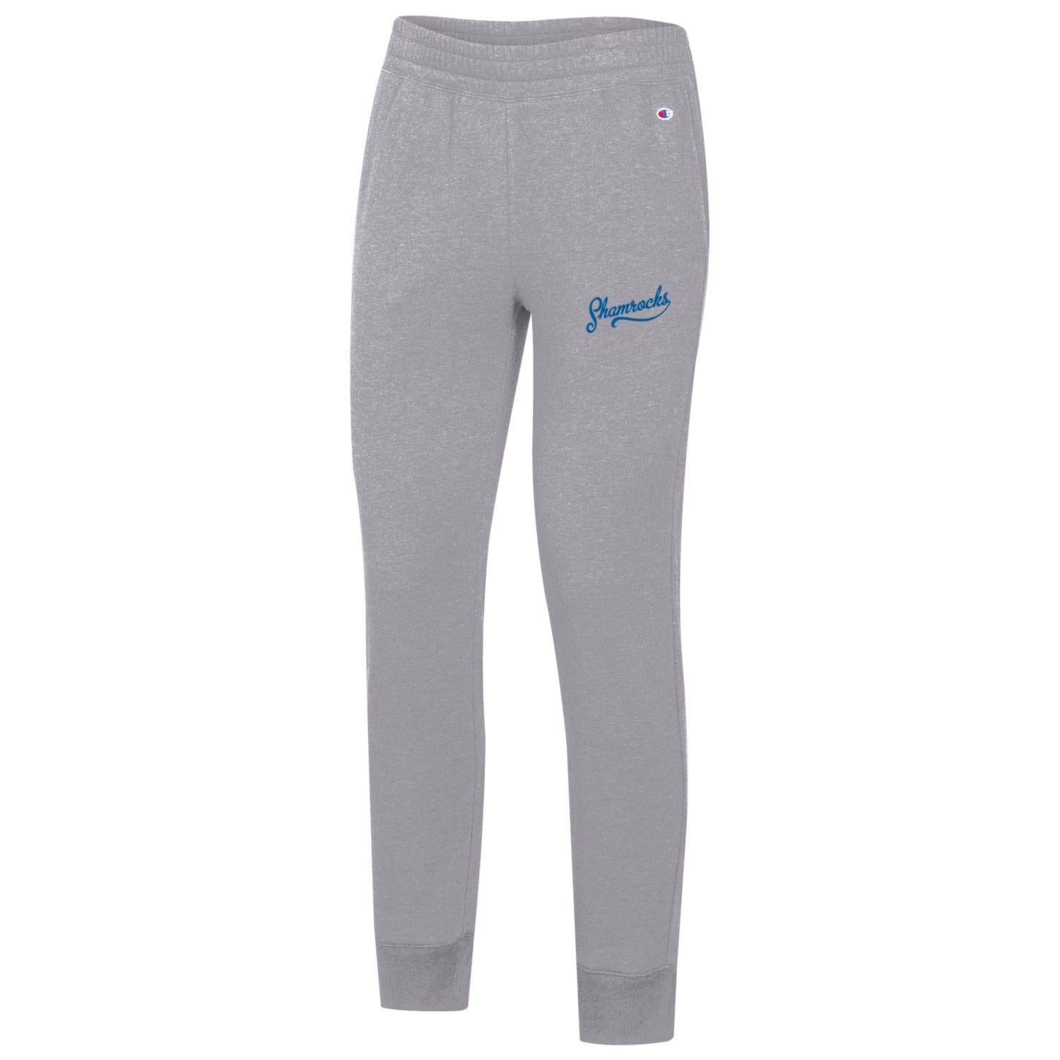 In a very soft poly/cotton/rayon blend, these "pedal pusher" style joggers are a cozy way to show some Shamrock spirit. The dark gray heather shows off a simple script Shamrocks on the left leg in royal. They have a 28" inseam and a comfortable elastic waistband.